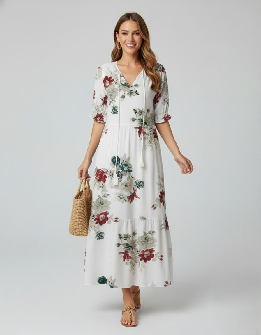 Een vloeiende bohemian jurk voor een natuurlijke charme