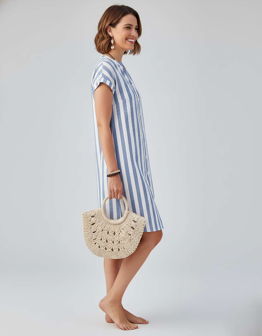 Laat je stijl spreken met de elegante gestreepte overhemdjurk!