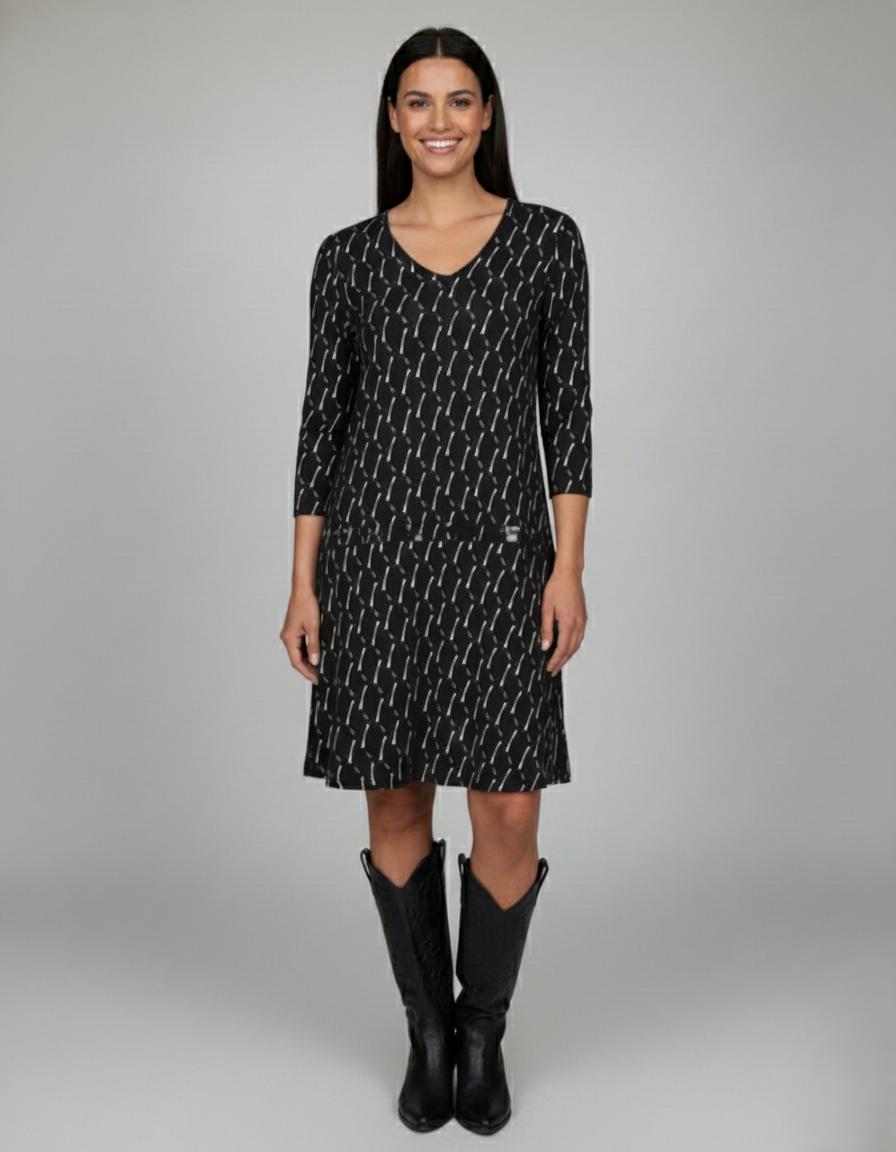Voeg wat flair toe aan je garderobe met de Jurk met V-Hals & Ruitjespatroon. Deze jurk is perfect voor de momenten waarop je iets opvallends wilt dragen zonder in te boeten op comfort.