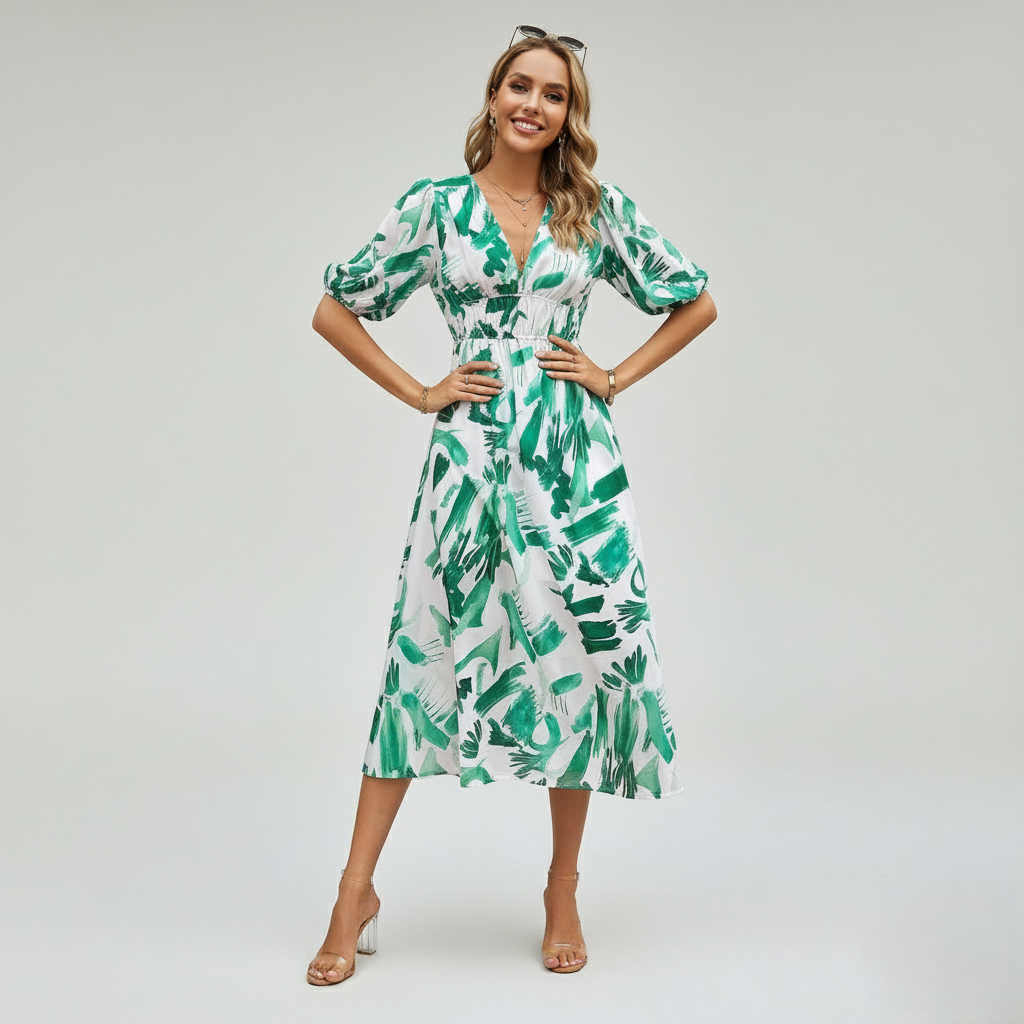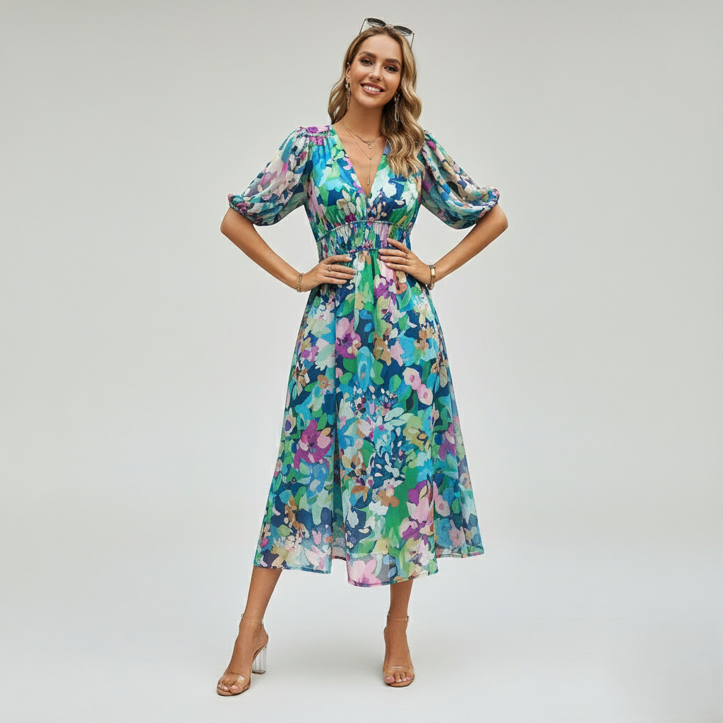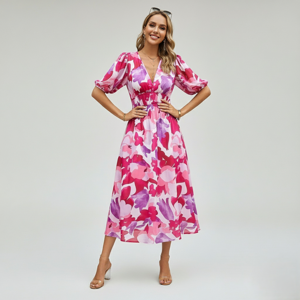 Kleurrijke V-hals Jurk is de ultieme mix van stijl en comfort, waardoor het een onmisbare toevoeging is aan je collectie.