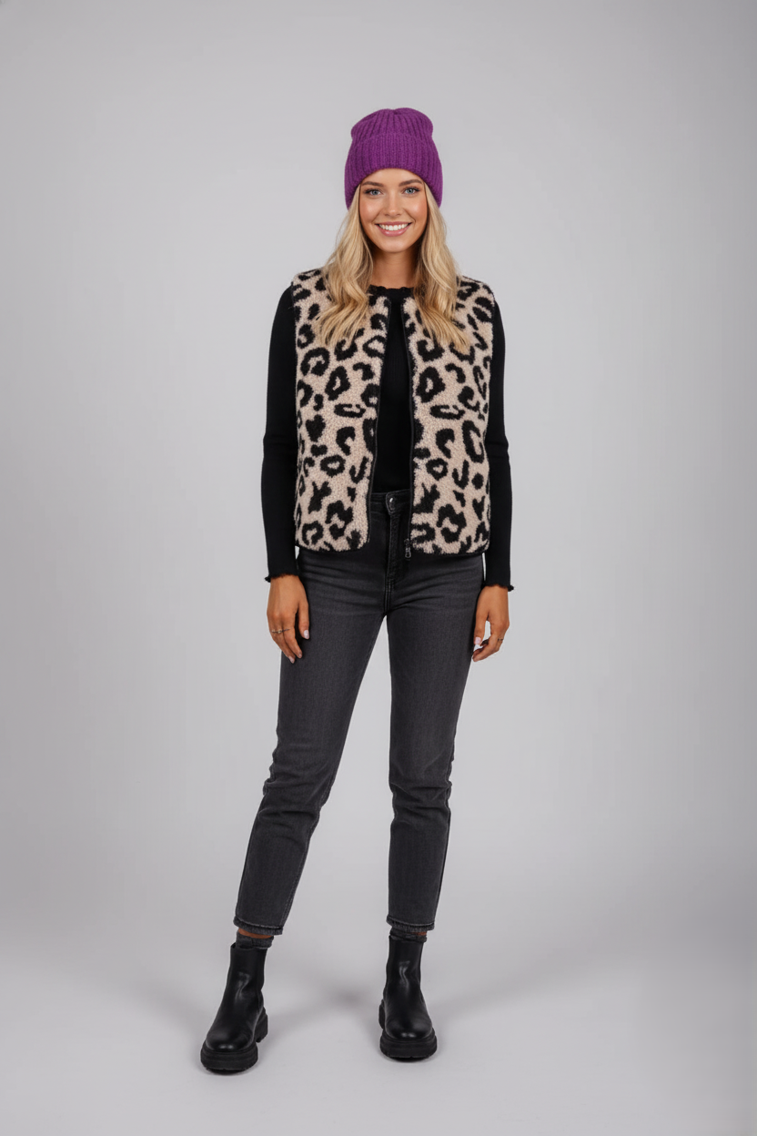 Trek de aandacht en blijf warm met deze opvallende luipaard bodywarmer. Gemaakt van heerlijk zacht en warm materiaal, perfect voor frisse herfstdagen of winterse wandelingen. De trendy dierenprint geeft elke outfit direct een stoere en stijlvolle twist, terwijl de comfortabele pasvorm ervoor zorgt dat je hem eindeloos kunt combineren – van casual tot chic.