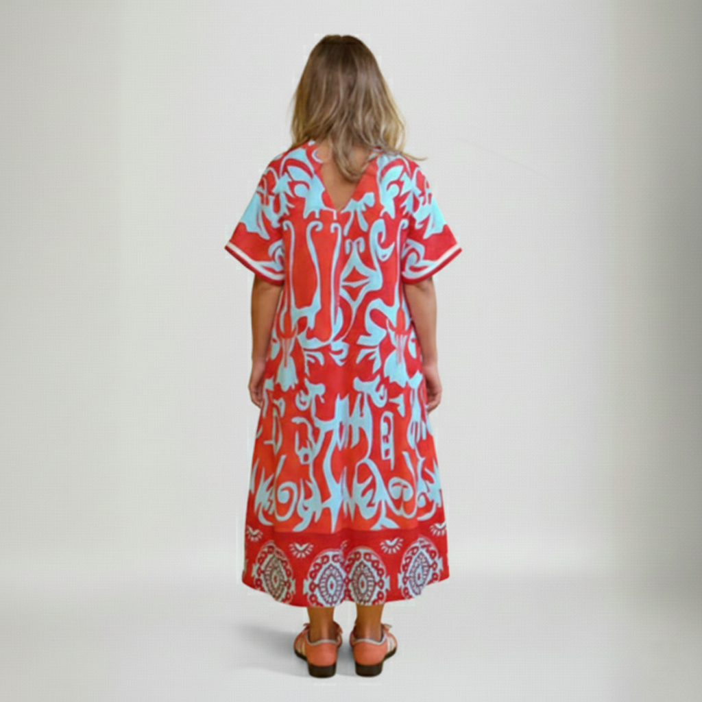 De Den Graaf®™ - Elegante bloemenjurk is het perfecte kledingstuk voor wie houdt van een verfijnde en romantische look. Het delicate bloemenpatroon en de vloeiende snit geven het silhouet gratie en harmonie, waardoor het ideaal is voor speciale gelegenheden, lentedagen of voor wie een vleugje tijdloze verfijning wil.