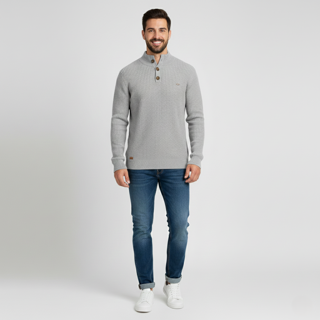 Als man tussen de 40 en 70 weet je wat je wilt: stijlvolle, comfortabele en functionele kleding die jouw uitstraling versterkt. Onze Heren Trui Met Knoopdesign is ontworpen met jouw behoeften in gedachten – een combinatie van verfijnde elegantie en praktisch comfort.