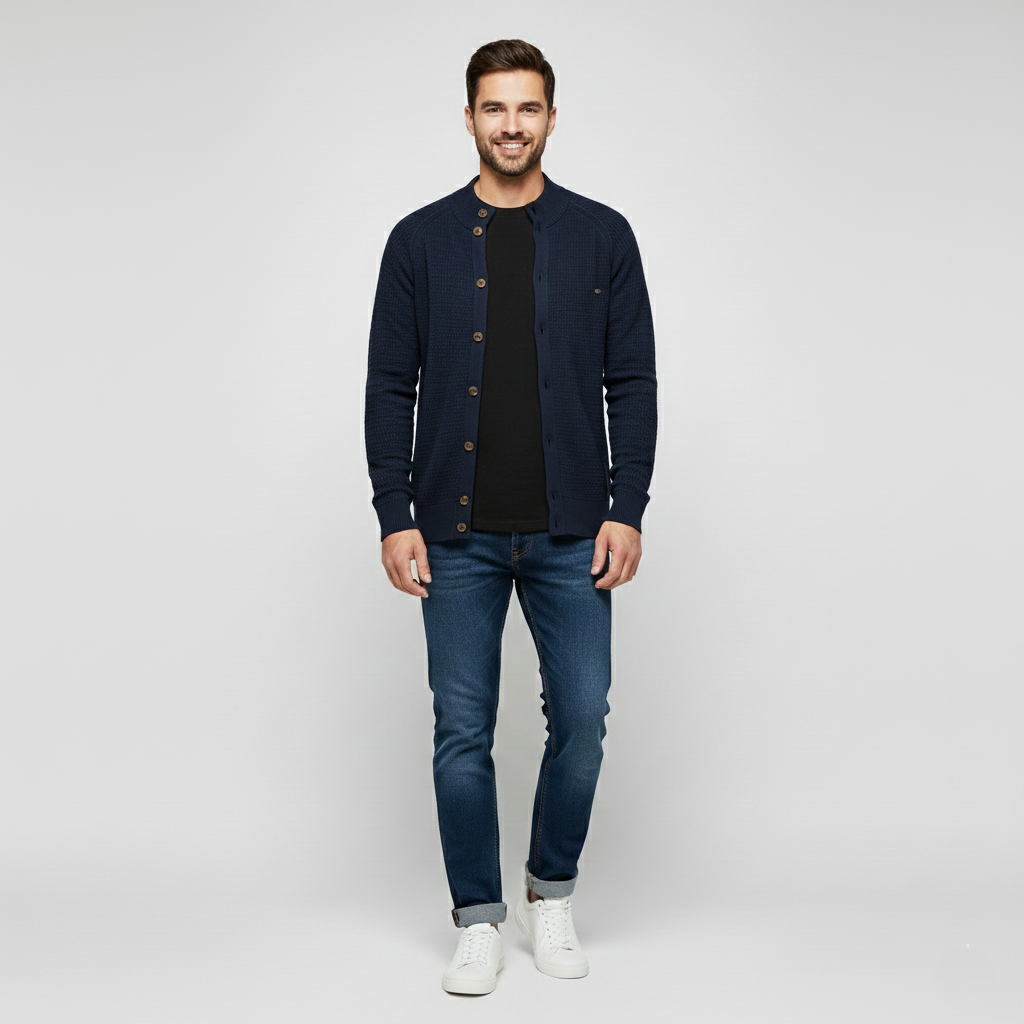 Het luxe katoenen vest combineert stijl, comfort en kwaliteit in één tijdloos ontwerp. Gemaakt van premium katoen, voelt dit vest heerlijk zacht aan en biedt het ultiem draagcomfort. De klassieke knoopsluiting en het verfijnde kabelgebreide patroon zorgen voor een elegante uitstraling, perfect voor zowel formele als casual gelegenheden.